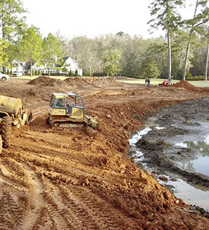 Tee construction, greens construction, bunker construction, lake contour adjustments, fairway re-contouring, and construction of tournament access roads.